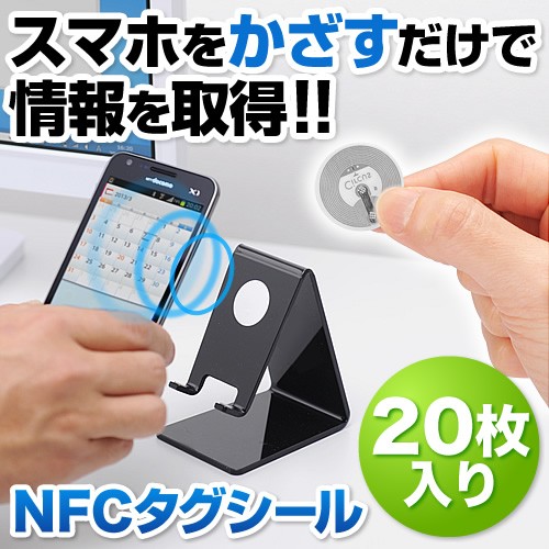 NFC対応Androidスマートフォンなどを「かざす」だけで情報を取得できるNFCタグシール。モバイルライフを快適にする自分だけのオリジナルNFCタグを作成できる。丸型・20枚セット。