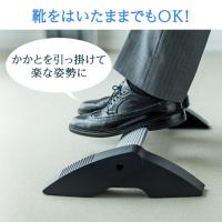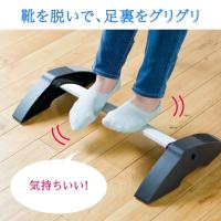 ●靴を脱いで足を置いた場合、土踏まずを押し込んでセルフマッサージができます。靴を履いても引っ掛けるように足を置くことが出来ます。