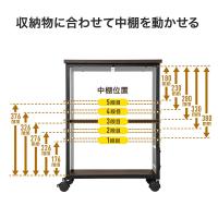 ●中棚は5段階で位置調整可能で、インクや用紙など機器のサイズによって変更可能です。