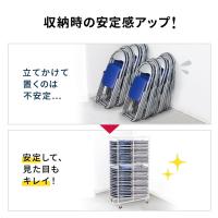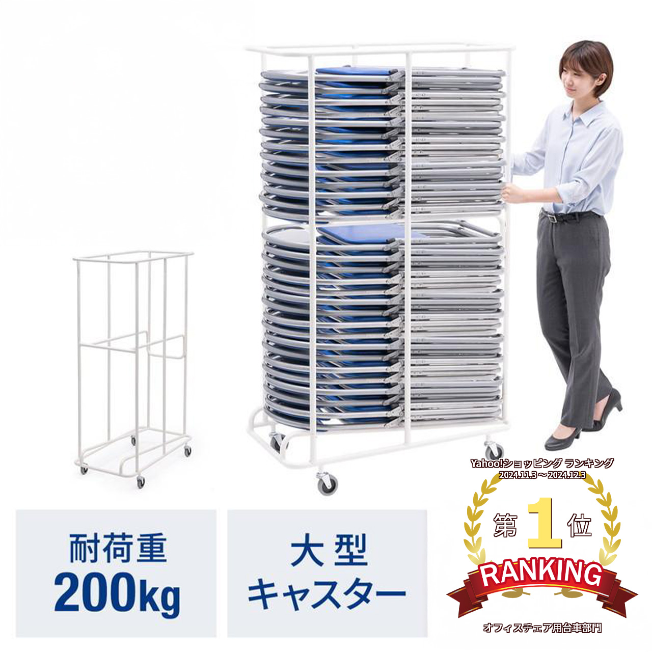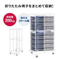 パイプ椅子を収納・整理・移動できる台車。折りたたみ椅子用の収納ラック。キャスター付きで運搬もらくらく。EZ15-SNC122BK/BLなら30脚収納が可能。収納サイズが合えば一般的なパイプ椅子も収納。ホワイト。