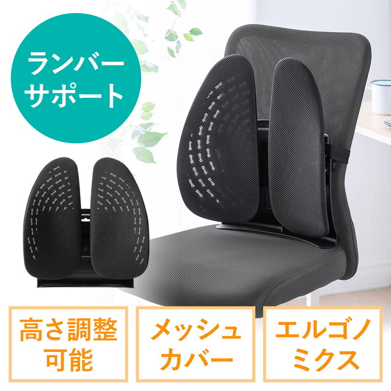 ランバーサポート 腰枕 人間工学 椅子 デスクチェア 腰痛 姿勢対策 メッシュ素材 車用 取付バンド調節可能 150-SNCCS2 サンワサプライ