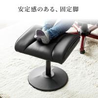 チェアと一緒に使用して脚を伸ばしてリラックスできる、オットマン。しっかり安定して使用できる、固定脚仕様。座面耐荷重約80kgで、補助チェアとしても使用できる。高さ調整可能。足置き台。PUレザー製。黒色。