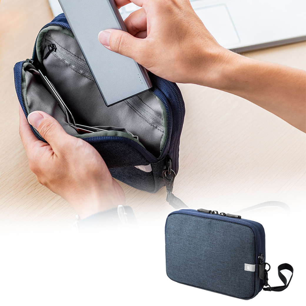 ●モバイルバッテリーやWi-Fiルーター、ケーブルやカード類などの収納に便利な、ガジェットポーチです。