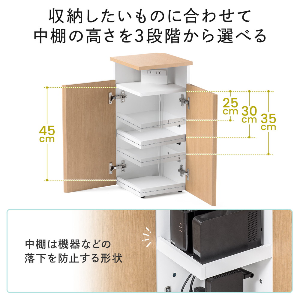●ケーブルや電源タップ、Wi-Fiルーター(5GHz対応)などが綺麗に収納ができる縦型収納ボックスです。