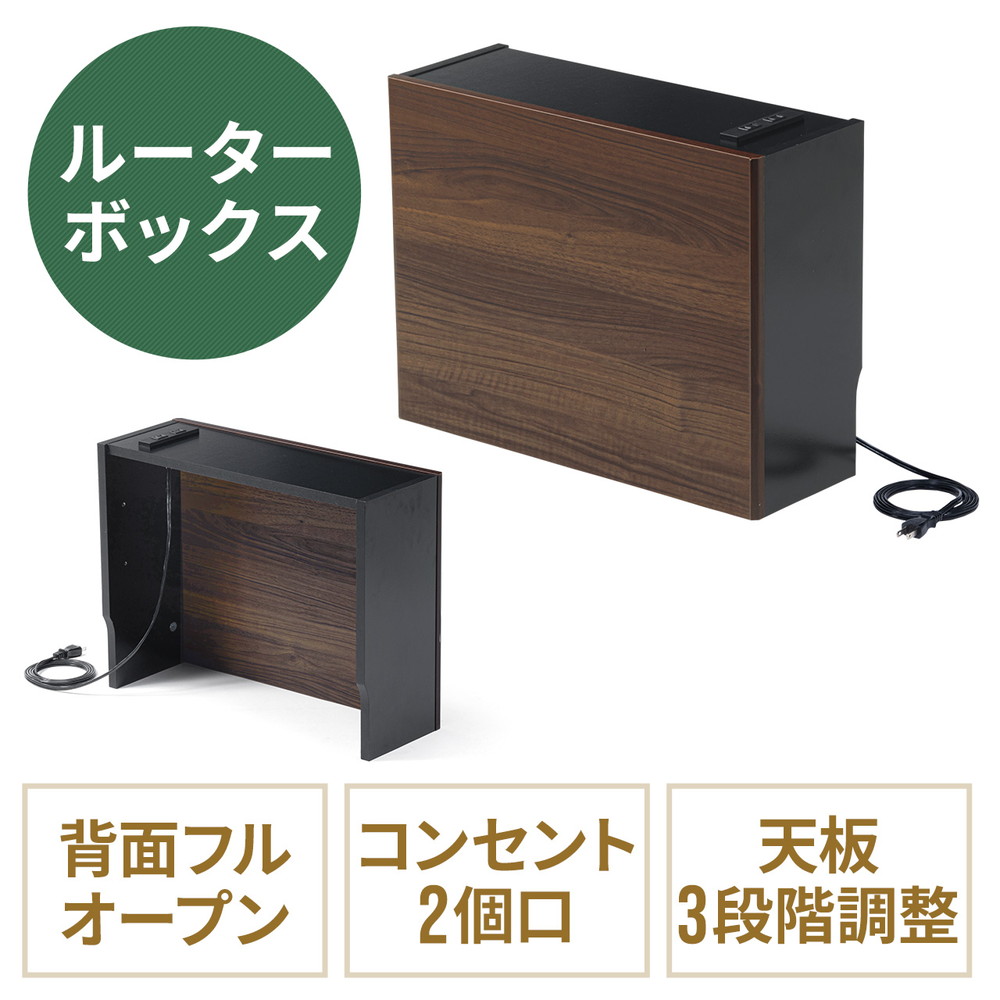 ルーター収納ボックス ルーターボックス ケーブルボックス コンセント付き 木製 スリム 壁面収納 電話台 幅50cm ダークブラウン 200-CB042DBRM サンワサプライ