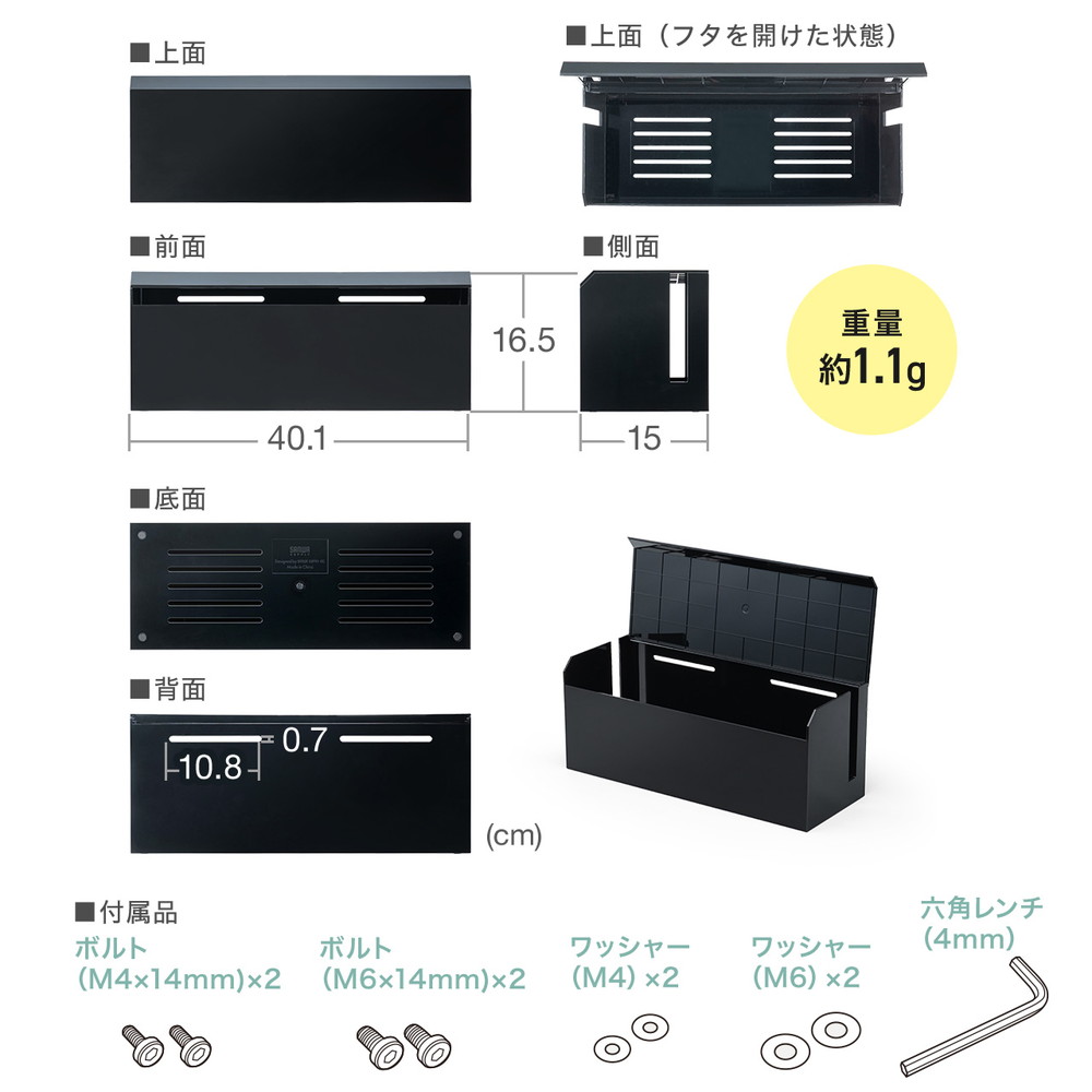 ケーブルボックス 電源まわり VESA対応 テレビ裏収納 Switch/Switch2収納 ABS樹脂製 難燃グレードUL94-V0 完成品 幅40.1cm ケーブル収納 ブラック 200-CB101BK サンワサプライ
