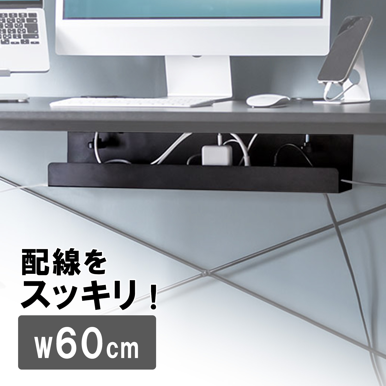 ●電源タップとケーブルを一緒に収納できるケーブルトレーです。