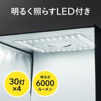 ●LEDライト(30灯×4/約6000ルーメン)を内蔵しているので、照明器具を別途購入する必要がありません。ACコンセントから給電し、手元でON/OFFができるスイッチを搭載しています。