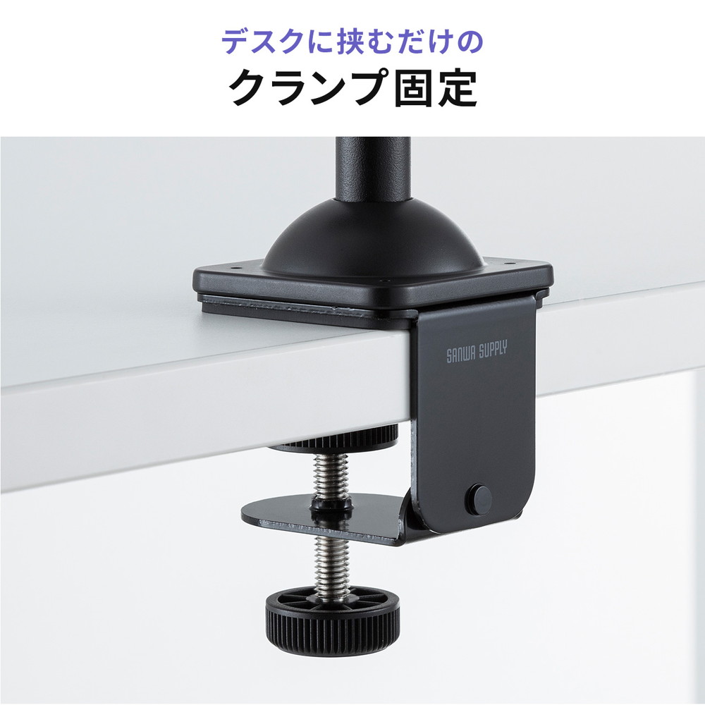 ●デスクに挟むだけの簡単なクランプ式で、不意に手が当たっても倒れず安心して使えます。