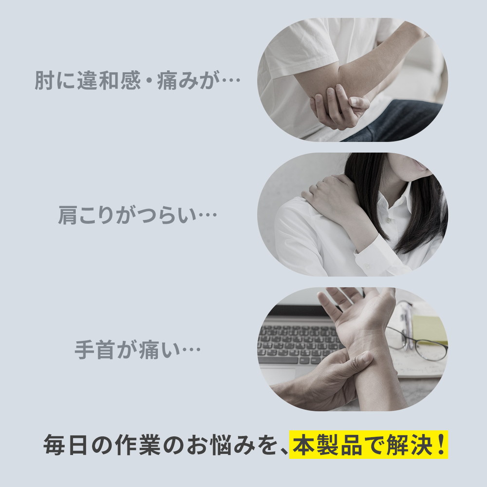 肘や肩への負担を軽減し、快適なデスクワークを実現する高さ可変式アームレスト。ねじ式の無段階高さ調節で自分に最適なポジションを追求可能。低反発クッションが長時間の作業でも疲労を抑制。面ファスナーで簡単装着、太い肘掛けにも対応する延長テープ付属。オフィスワーク、在宅勤務、ゲームプレイなどPC作業に最適なサポートアイテム。