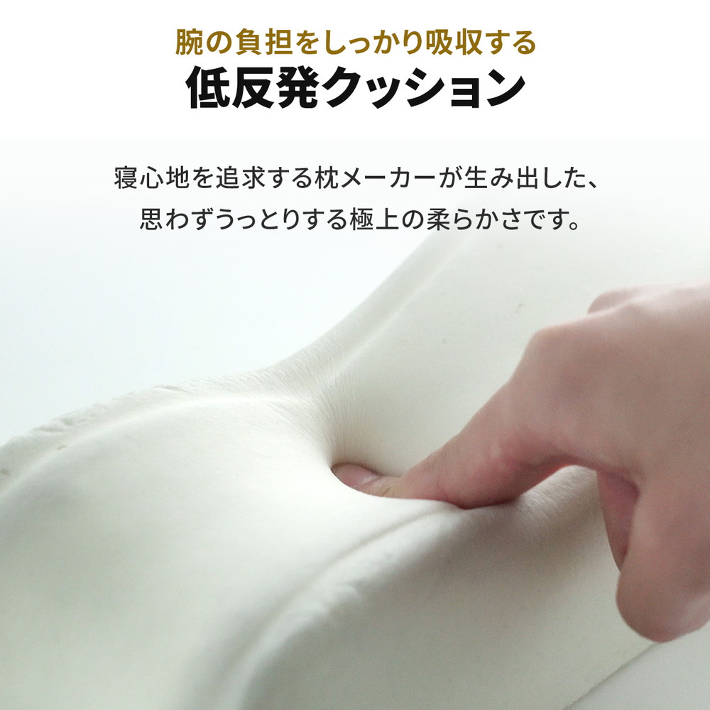 ●低反発クッションが腕を置いた際の圧力を分散し、肘や前腕への負担を吸収することで、リラックスして作業できます。