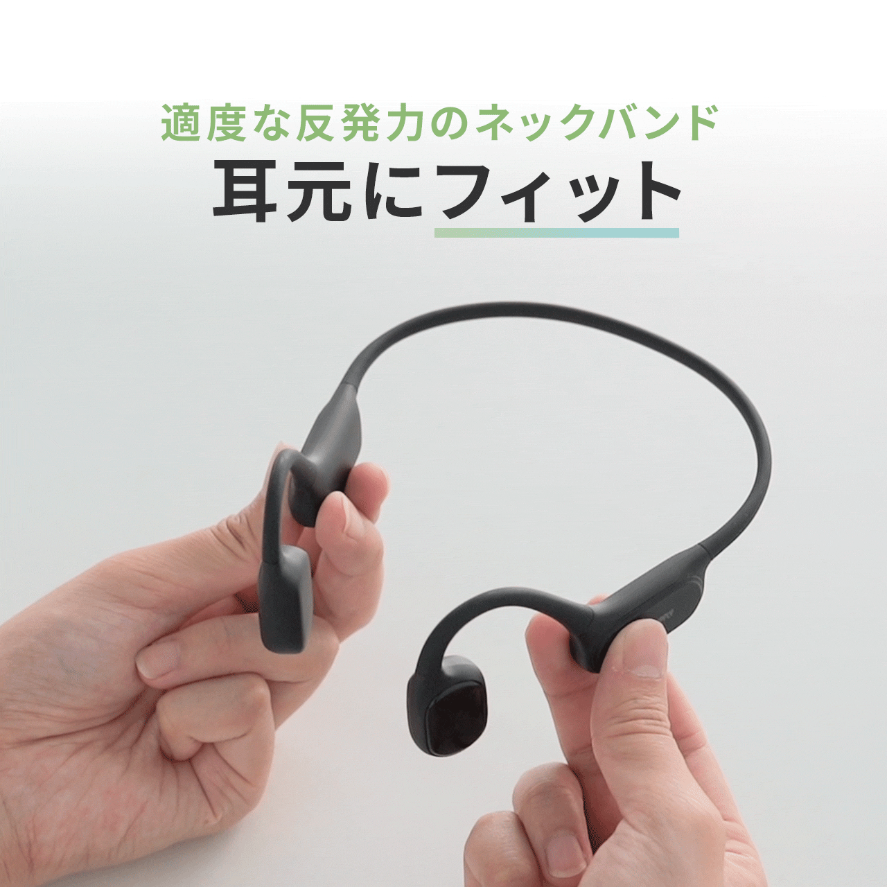 ●適度な反発力のネックバンドが耳元にフィットして、長時間でも快適な装着感です。