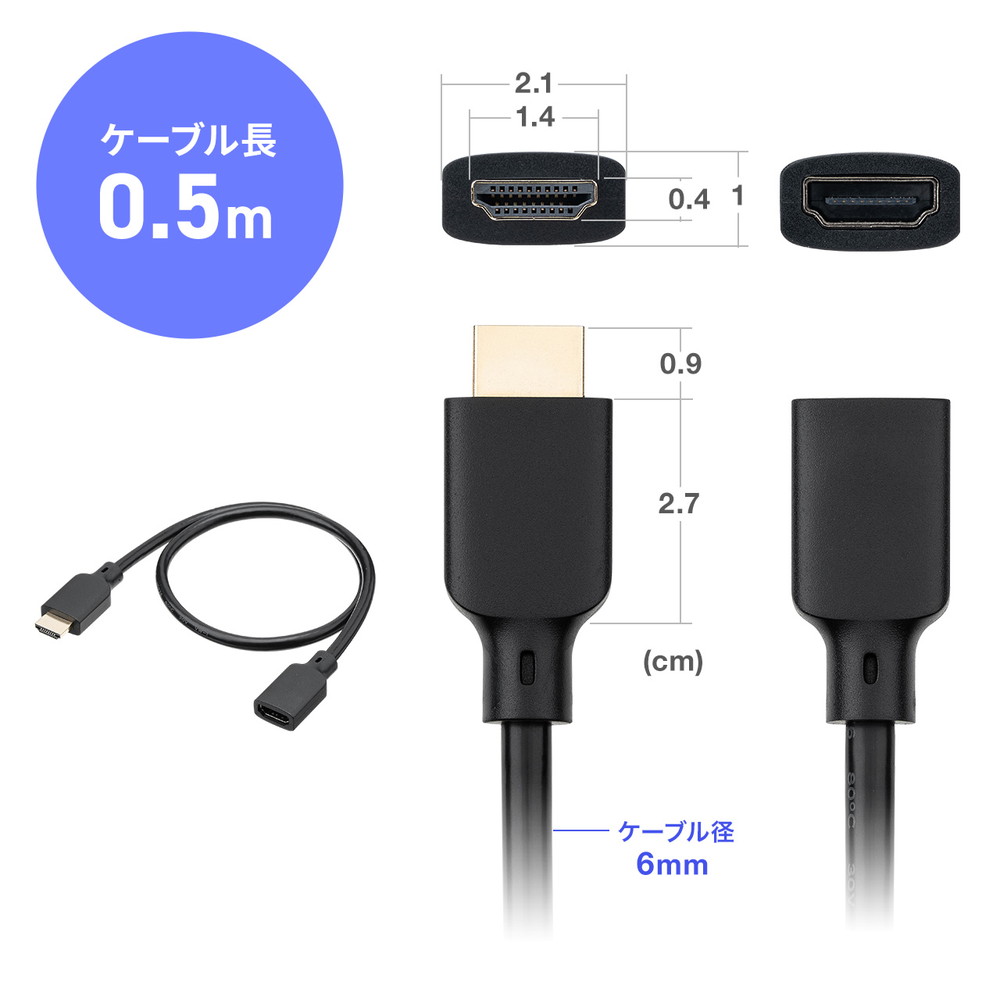 HDMI延長ケーブル 30cm 8K60Hz 4K120Hz ウルトラハイスピード HDMI2.1 48Gbps eARC ダイナミックHDR テレビ Fire TV Stick switch PS5 短い 500-HD032-EN05 サンワサプライ