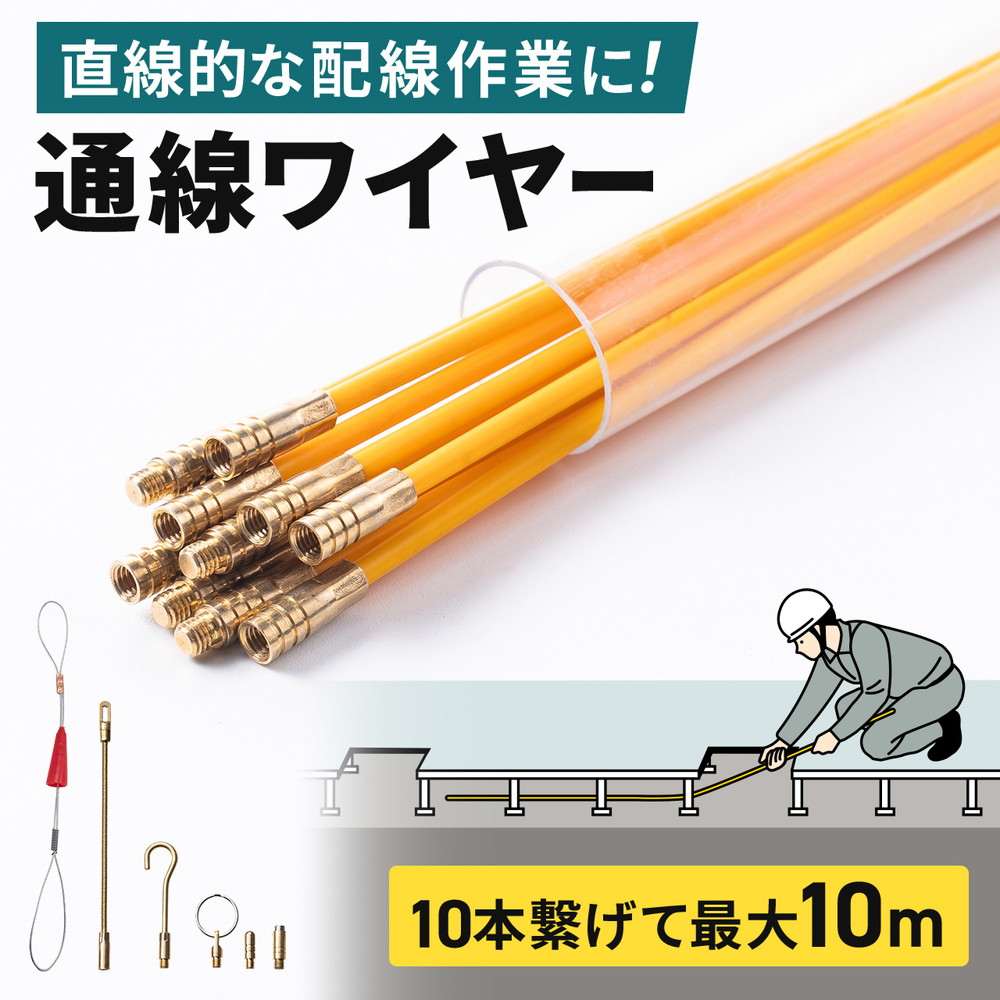● 1mのワイヤーを10本まで簡単に継ぎ足し可能で、最大10mまで使用できる通線ワイヤーです。