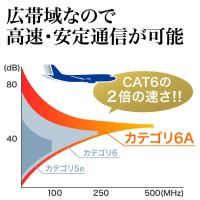 ●伝送帯域は500MHzと広く、エンハンスドカテゴリ5の5.0倍、カテゴリ6の2.0倍の伝送帯域を実現しています。