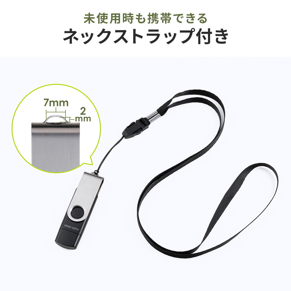 USBメモリ 32GB USB A タイプC 両対応 ネックストラップ付き スイング式 おすすめ 名入れ対応 3USCA32G 600-3USCA32G サンワサプライ