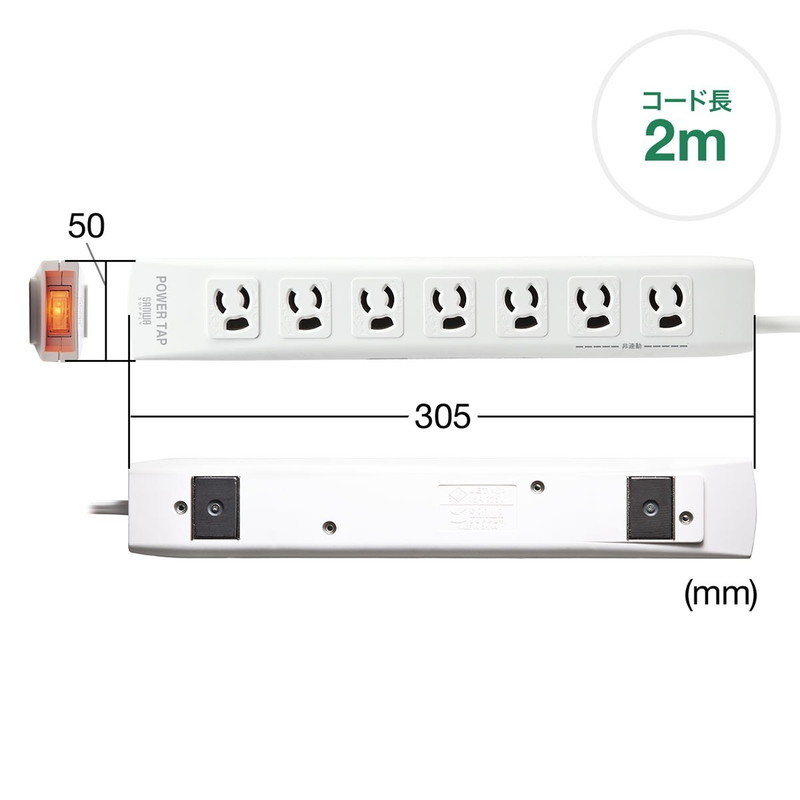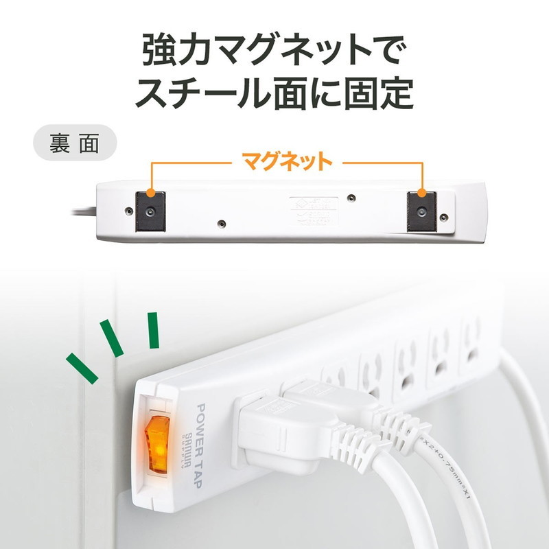 電源タップ 一括集中スイッチ マグネット固定 雷サージ 3P 2m 2Pプラグ 7個口 700-TAP035 サンワサプライ