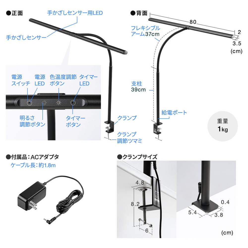 デスクライト クランプ式 ワイド 調光 調色 ハンドセンサー 800-LED080 サンワサプライ
