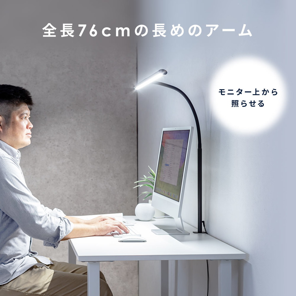 ●クランプで設置できる、デスクでの使用に最適なLEDライトです。