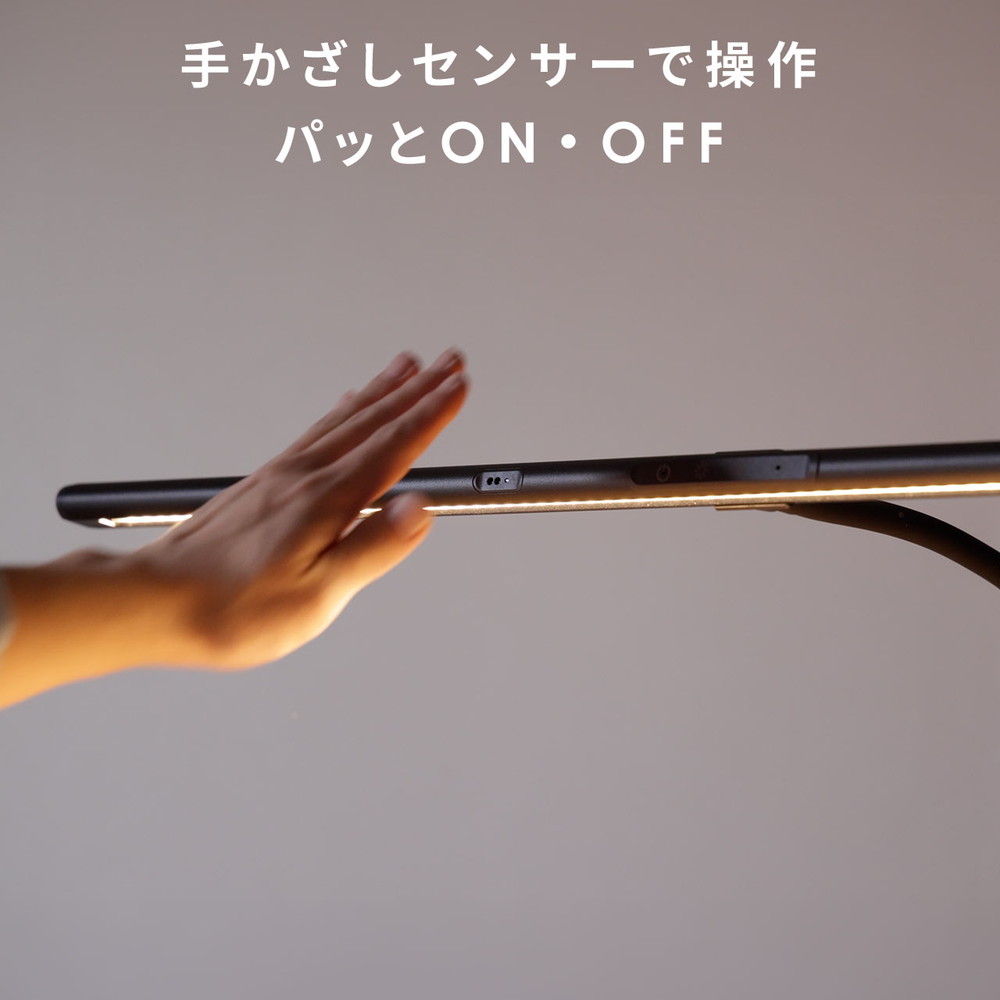 LED部がフレキシブルに自由に動く、好みの場所に調整可能。アーム長も長く最高76cmまで対応。ハンドセンサーでON/OFF可能で、最大1100ルーメンの調色・調光も可能なLEDライト。