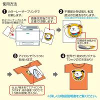 ●カラーレーザープリンター、カラーコピーで印刷した画像をアイロンで転写して、オリジナルグッズが作れる用紙です。赤や黒など濃色のカラー布用ですが、白・淡色布にも使用できます。