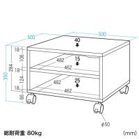 デスクとの併設に最適な高さを抑えたプリンタースタンド。W500×D500×H350mm。