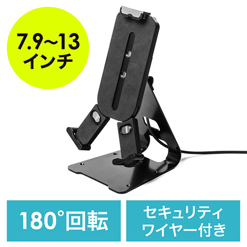 ●左右の角度調整は、7.9インチ〜10インチまでの機器であれば、180°の調整が可能で、