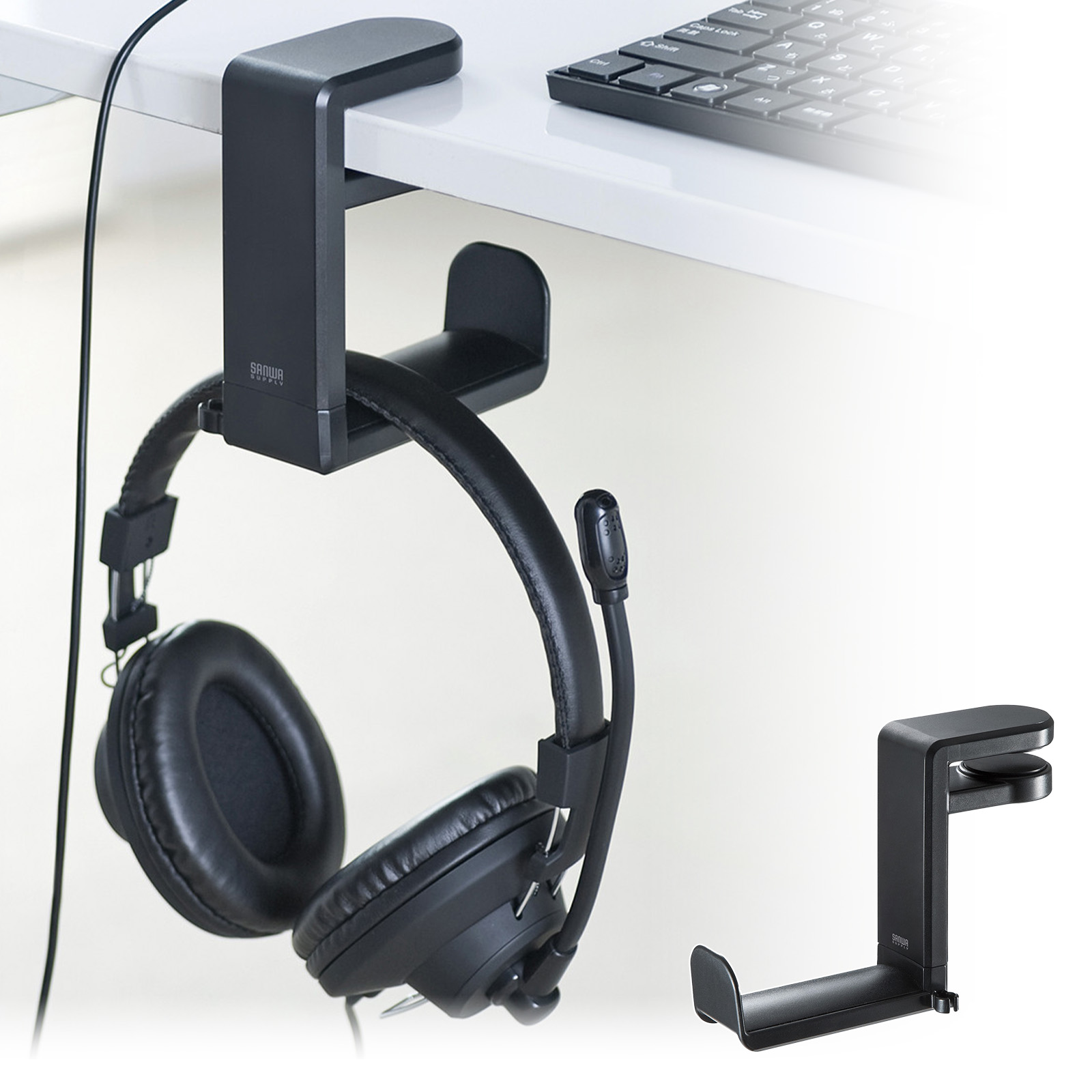 ヘッドホンフック 360度回転式 簡単取り付け ブラック PDA-STN18BK サンワサプライ