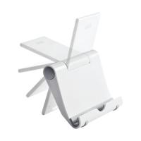 角度調節可能な折りたたみ式のコンパクトiPadスタンド。ホワイト。