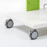 ●教室間の移動などに配慮し、ハンドルと強度の高いキャスターを装備しました。