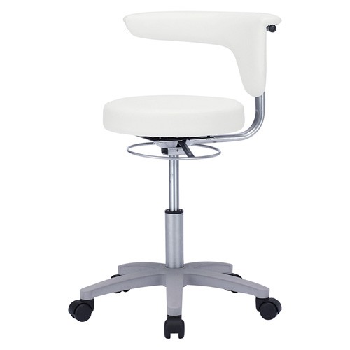 背もたれにも肘かけにもなる2WAY肘を装備。病院向けのビニールレザー張りの丸椅子。ホワイト。SNC-HP3VW2 サンワサプライ