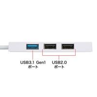 USB Type-Cコネクタ搭載のUSB3.1 Gen1×1ポート、USB2.0×3ポートのコンボタイプUSBハブ。ホワイト。