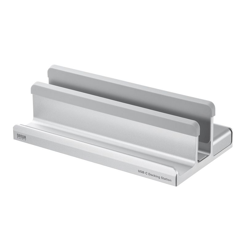ノートPCスタンド一体型のType-Cケーブル1本の接続で拡張できるドッキングステーション。HDMIを2ポート搭載し2画面出力に対応。ノートPCを閉じてクラムシェルスタンド、開いてノートパソコンスタンドとしても使用可能。USB PD(PowerDelivery)対応。有線LAN対応。