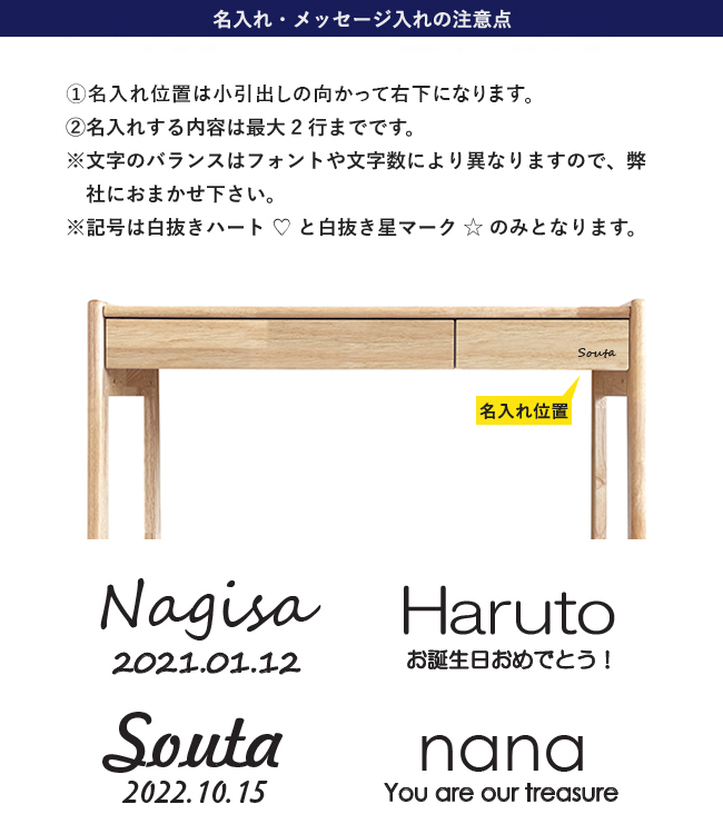 名入れが出来る"ノコルスタディデスク"です