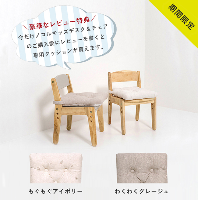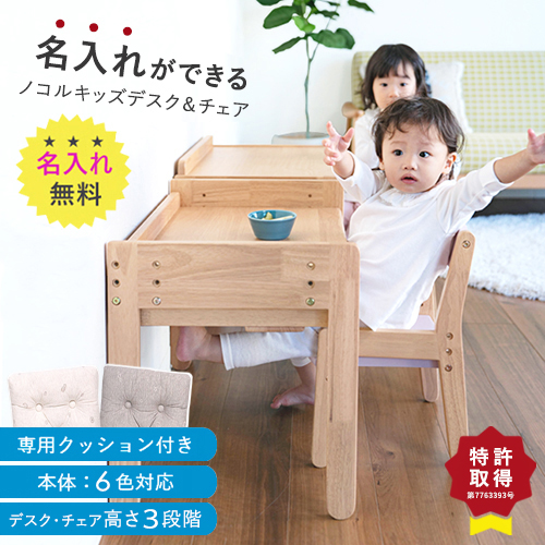 \4/17まで10%OFFクーポン/【2点セット+専用クッション付き/ 名入れ無料】ノコル キッズデスク & チェア 子供 机 デスク