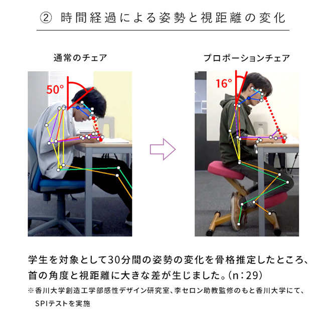 プロポーションチェアは、座面が傾いているので自然と背筋が伸び、理想的な姿勢を保てます。