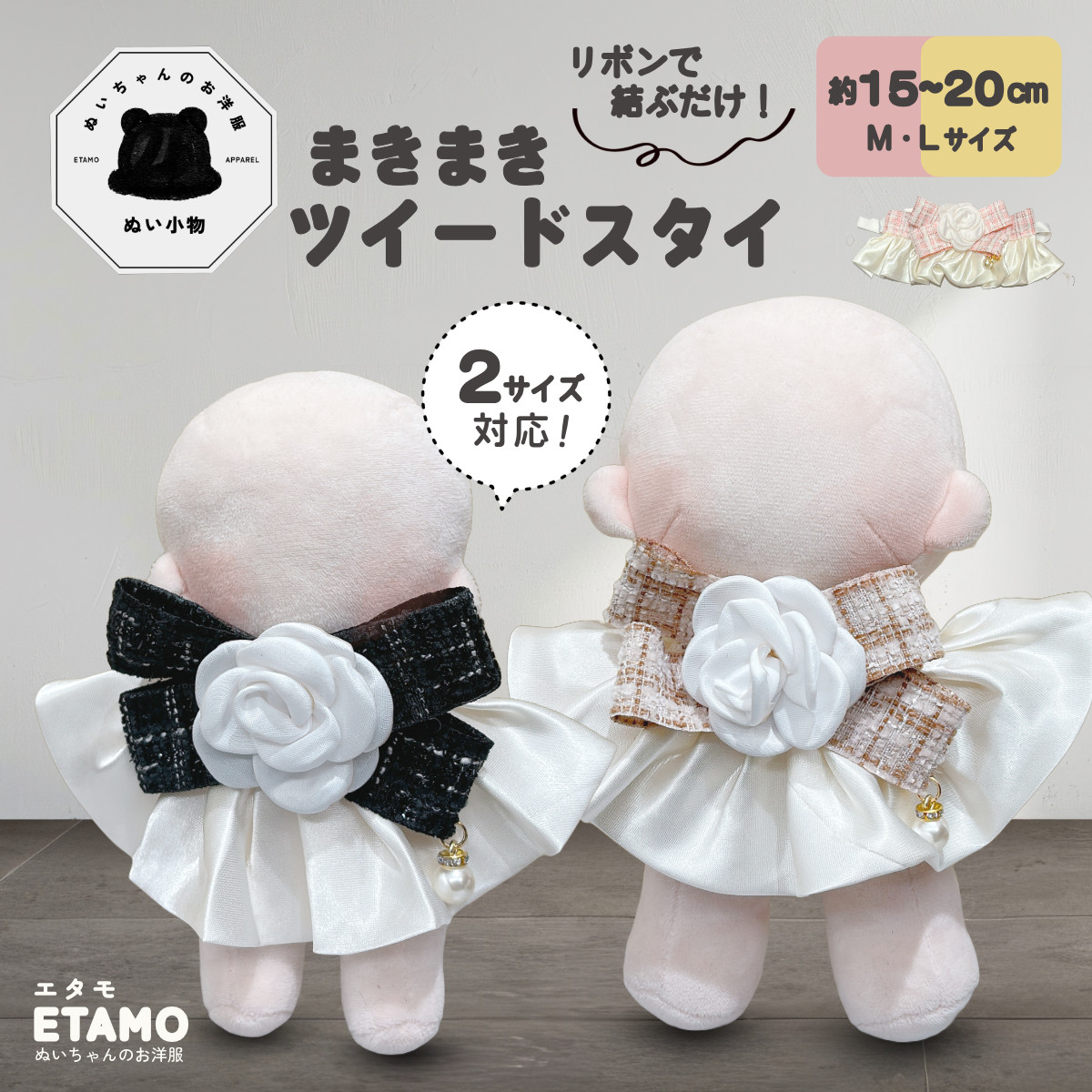 ぬい服 15cm 20cm スタイ ツイード スタイ ぬいぐるみ 服 アクセ コスチューム リボン フリル 大きい 着せ替え 洋服 持ち運び 推し活グッズ 可愛い エタモ etamo