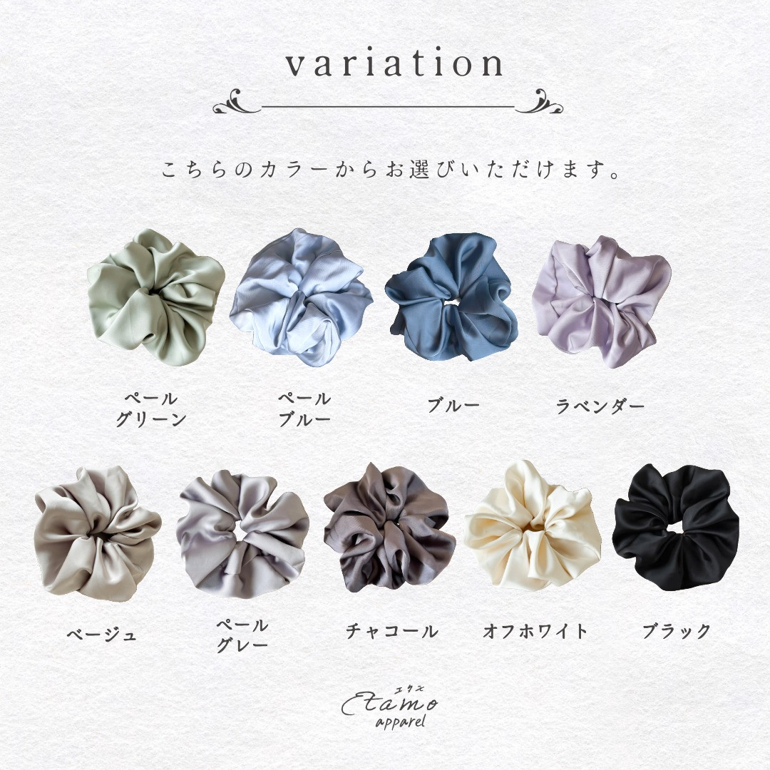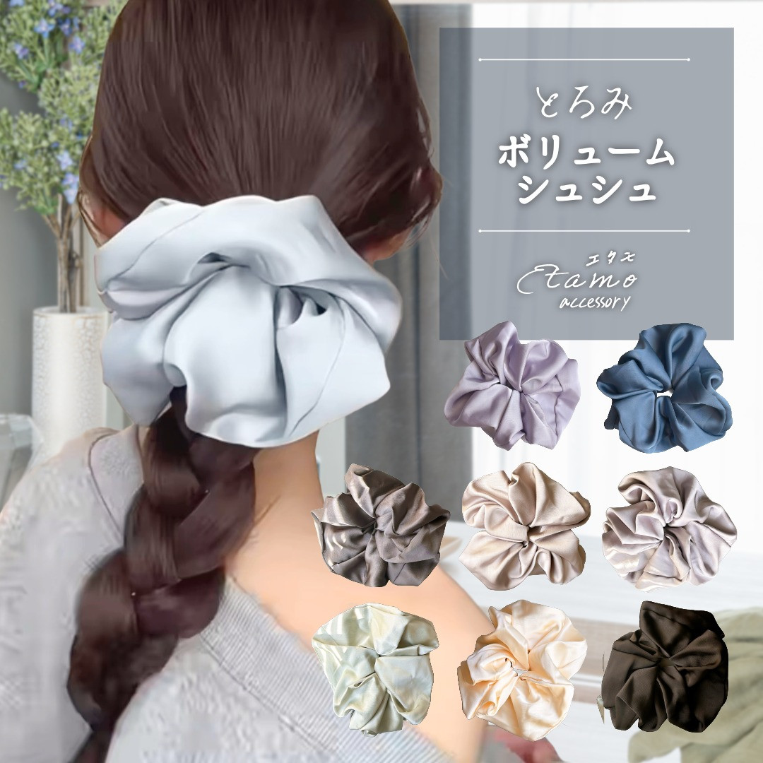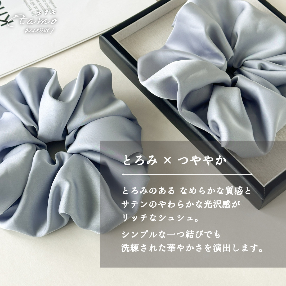 シュシュ ビッグシュシュ 大きめ 大きい ボリューム ヘアゴム サテン シンプル ヘアアクセ 可愛い かわいい オシャレ お洒落 ギフト オフィス 大人 エタモ