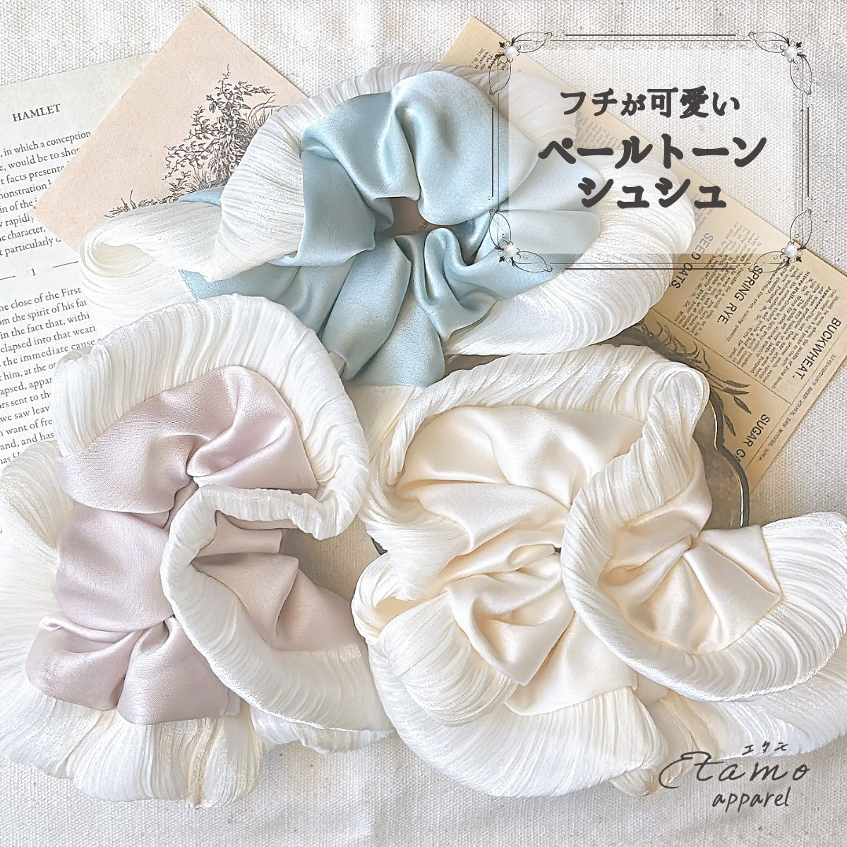 シュシュ 大きめ 大きい ボリューム 大人かわいい ヘアゴム シンプル 無地 ヘアアクセ 可愛い かわいい オシャレ お洒落 ギフト オフィス レディース エタモ