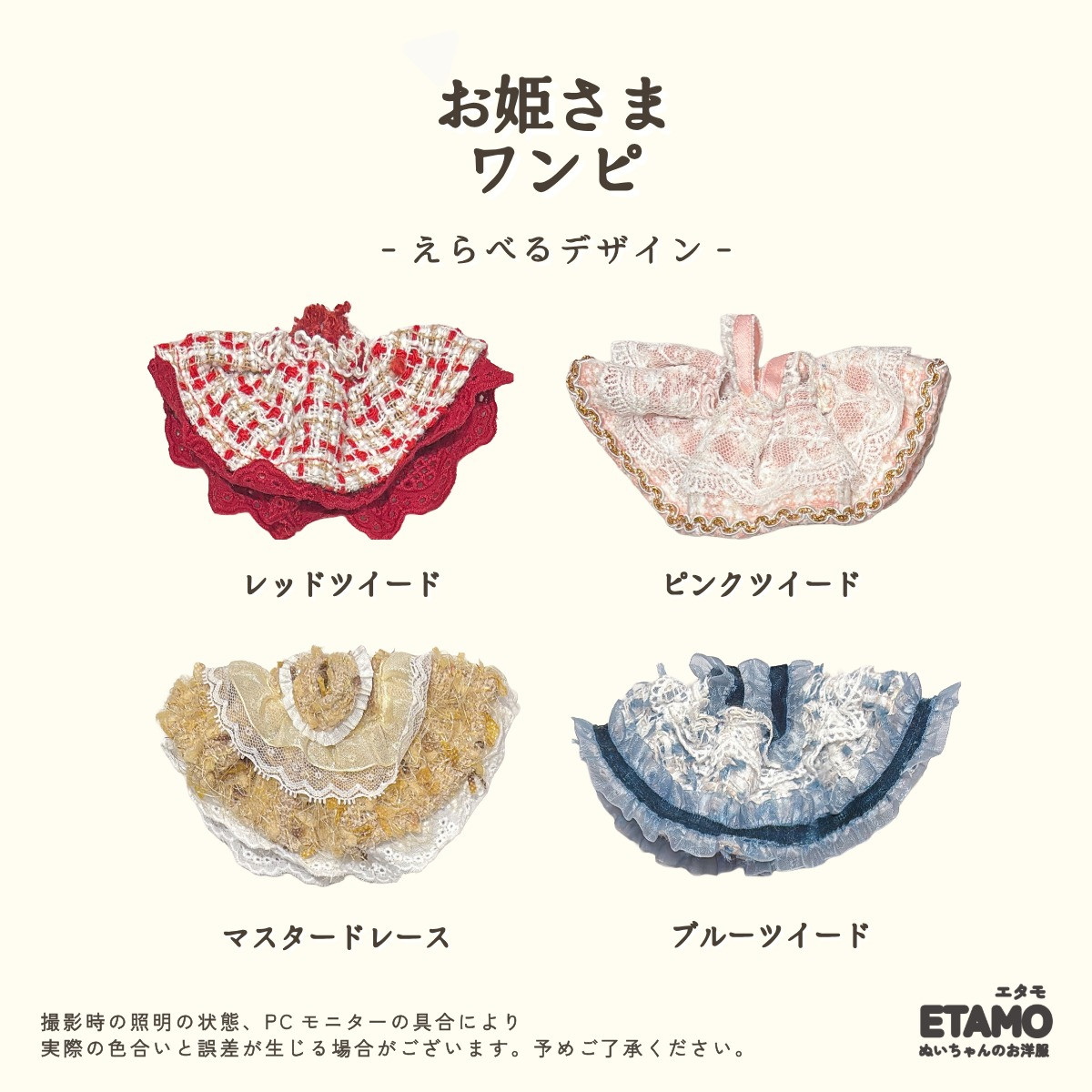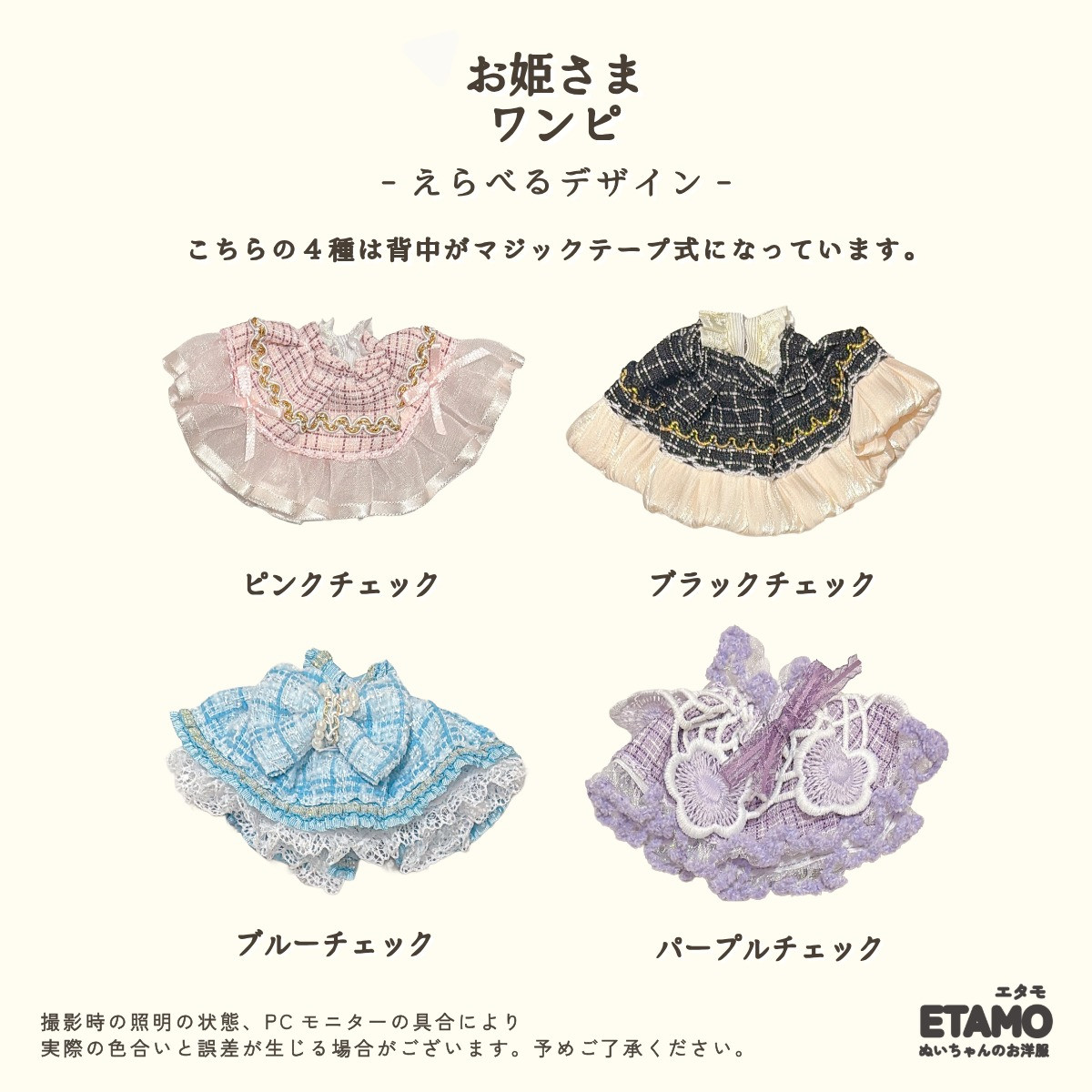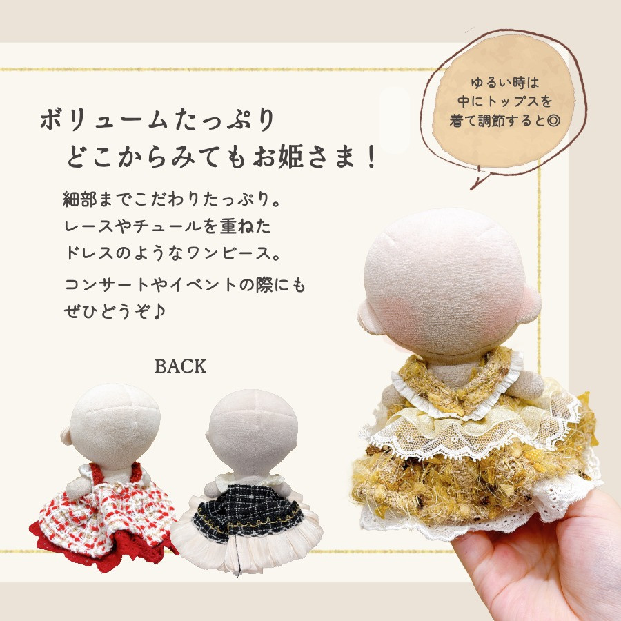 ぬい服 10cm ドレス ワンピ ぬいぐるみ 服 11cm 12cm ちび ぬい ワンピース 推し色 洋服 ぬい活 推し活グッズ おしゃれ 可愛い かわいい キダルト ギフト エタモ
