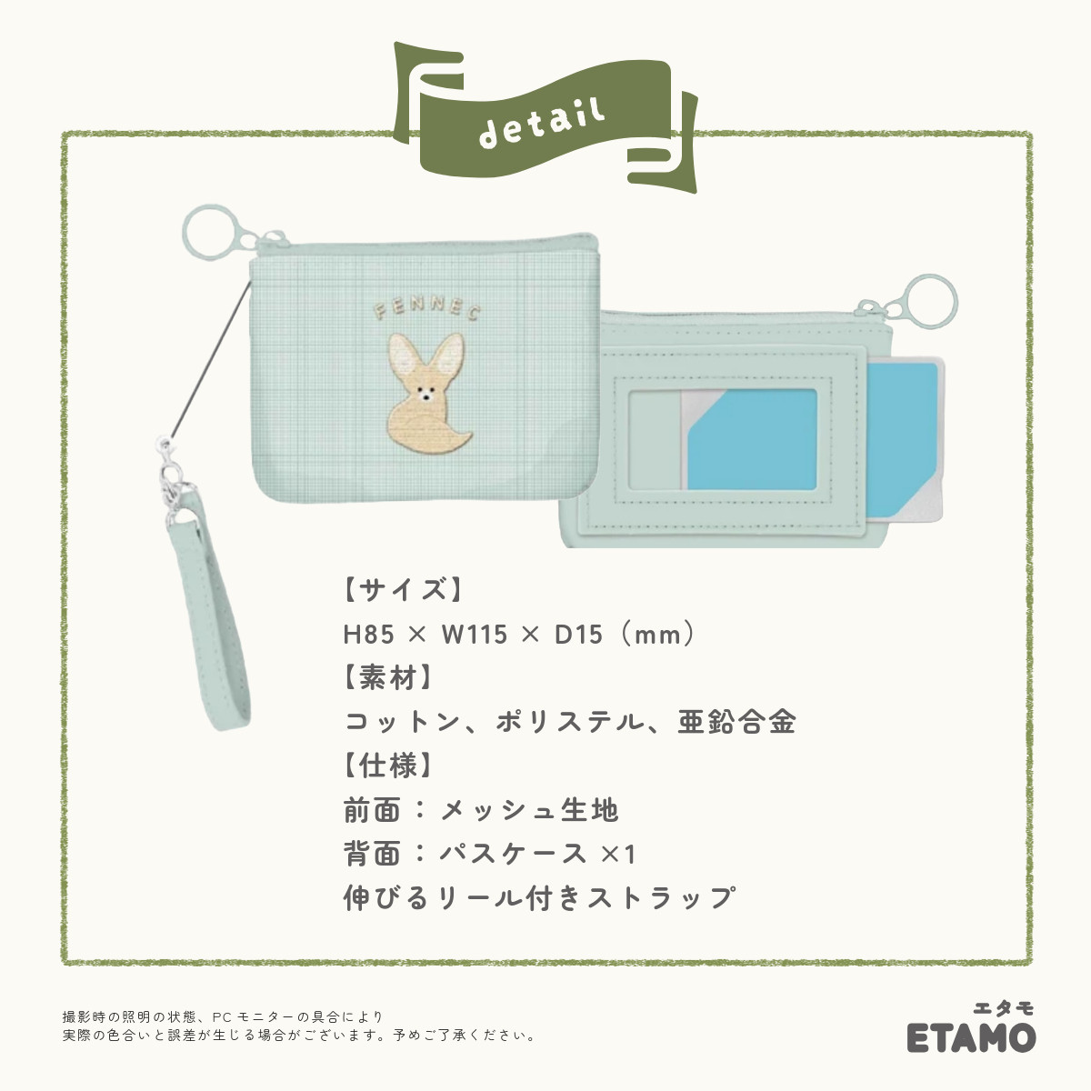 パスケース リール付き ポーチ付き 小銭入れ ic 定期入れ 透明 鍵 ハシビロコウ マヌルネコ 猫 雑貨 グッズ 学生 大人 レディース おしゃれ ギフト エタモ