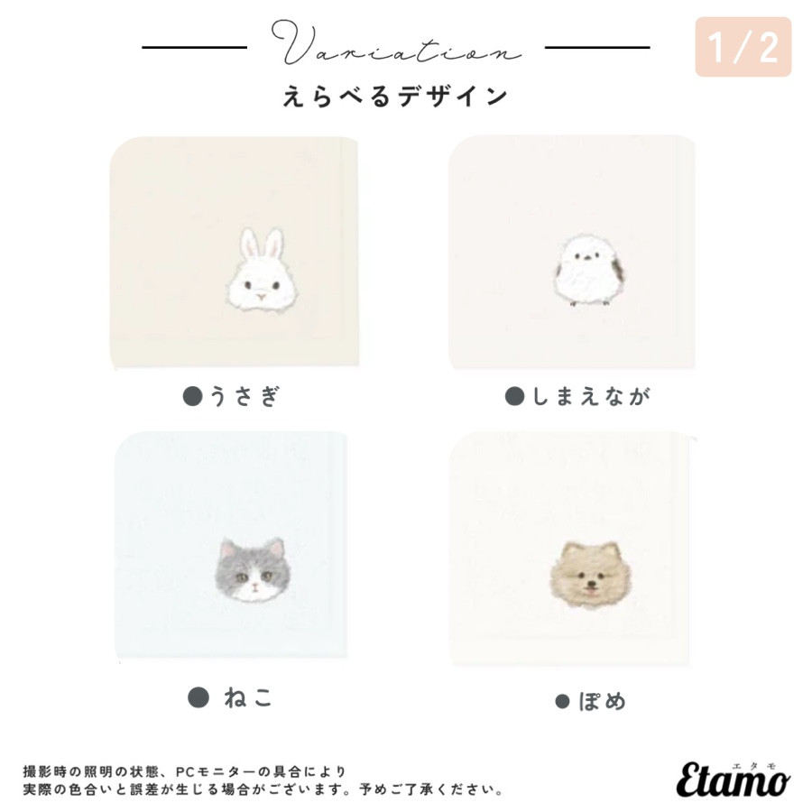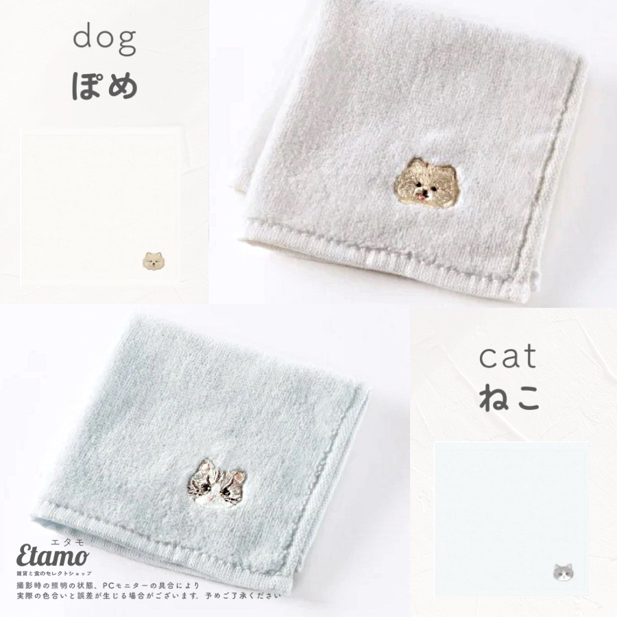 アニマルたちの繊細な刺繍がかわいいタオルハンカチです。