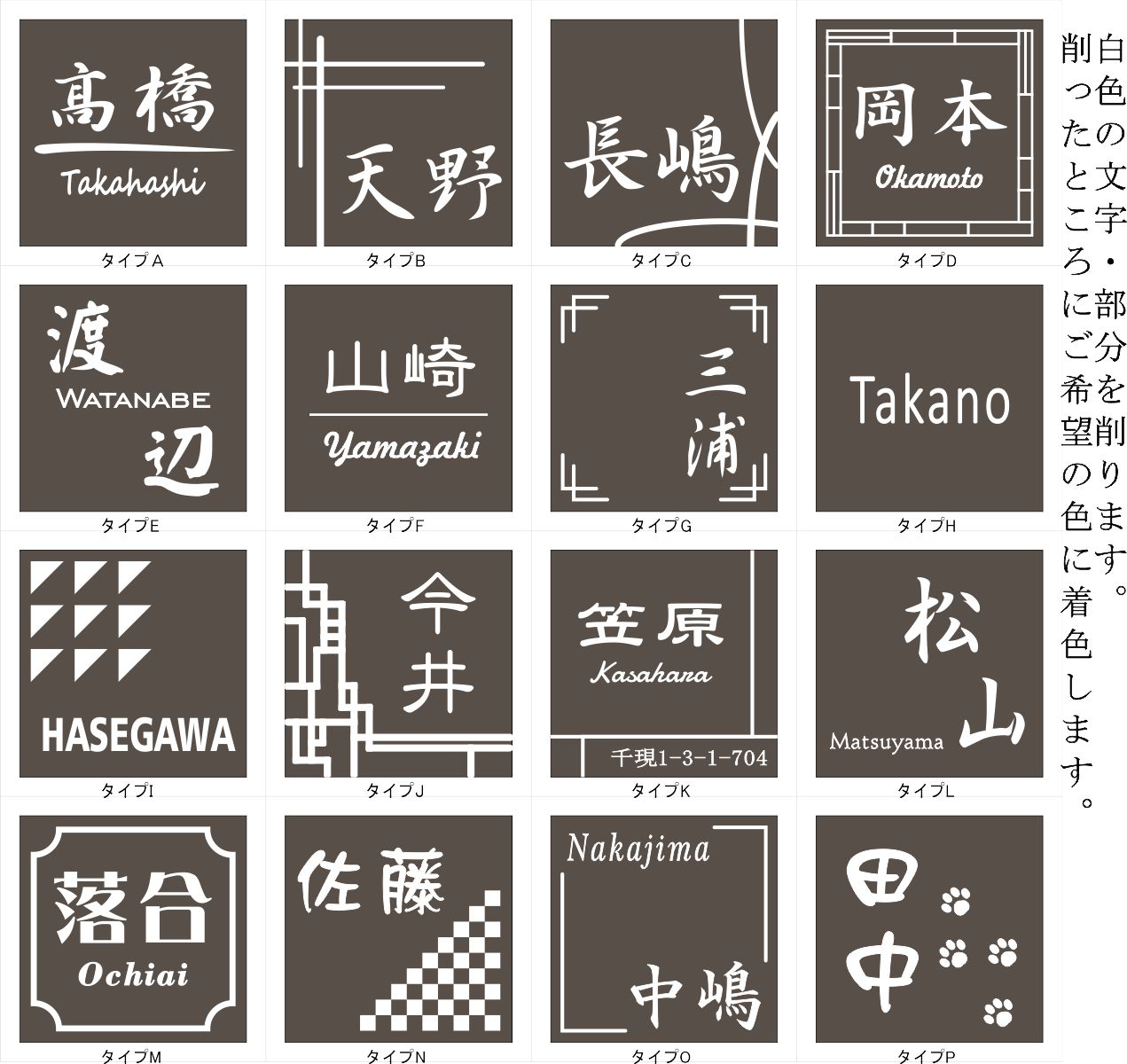 文字等着色:黒、白、ゴールド、シルバー