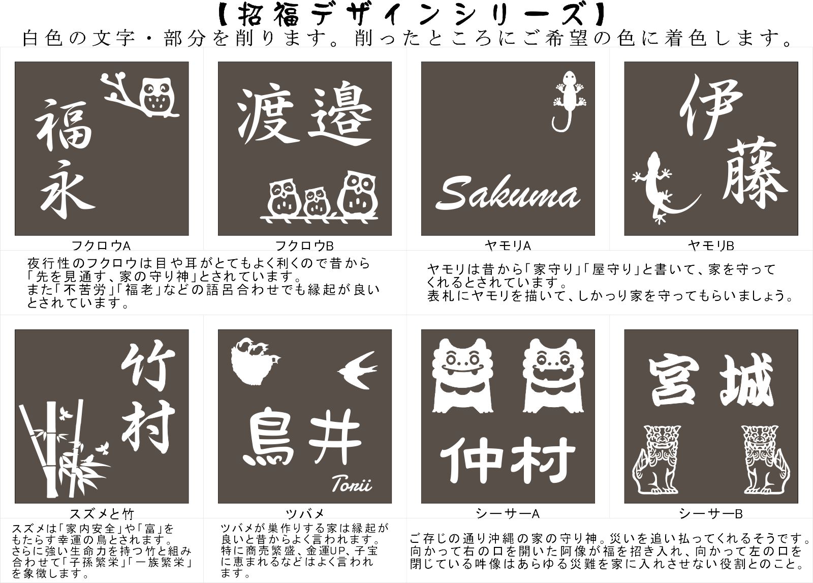 ・通常デザイン、二世帯デザイン、招福デザイン、伝統文様デザインもあります