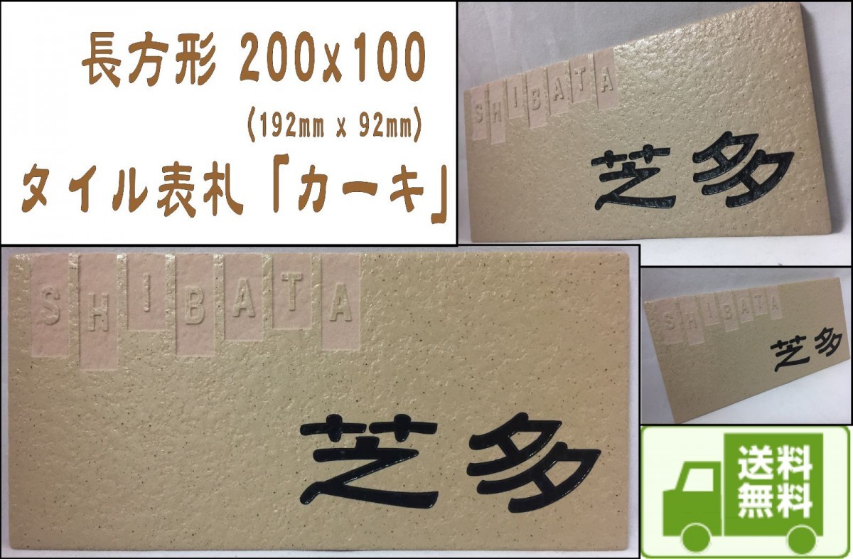 200x100角 長方形タイル表札「カーキ」 デザイン表札 送料無料 おしゃれ 戸建て マンション用 二世帯住宅 長方形 【追加マグネット可】