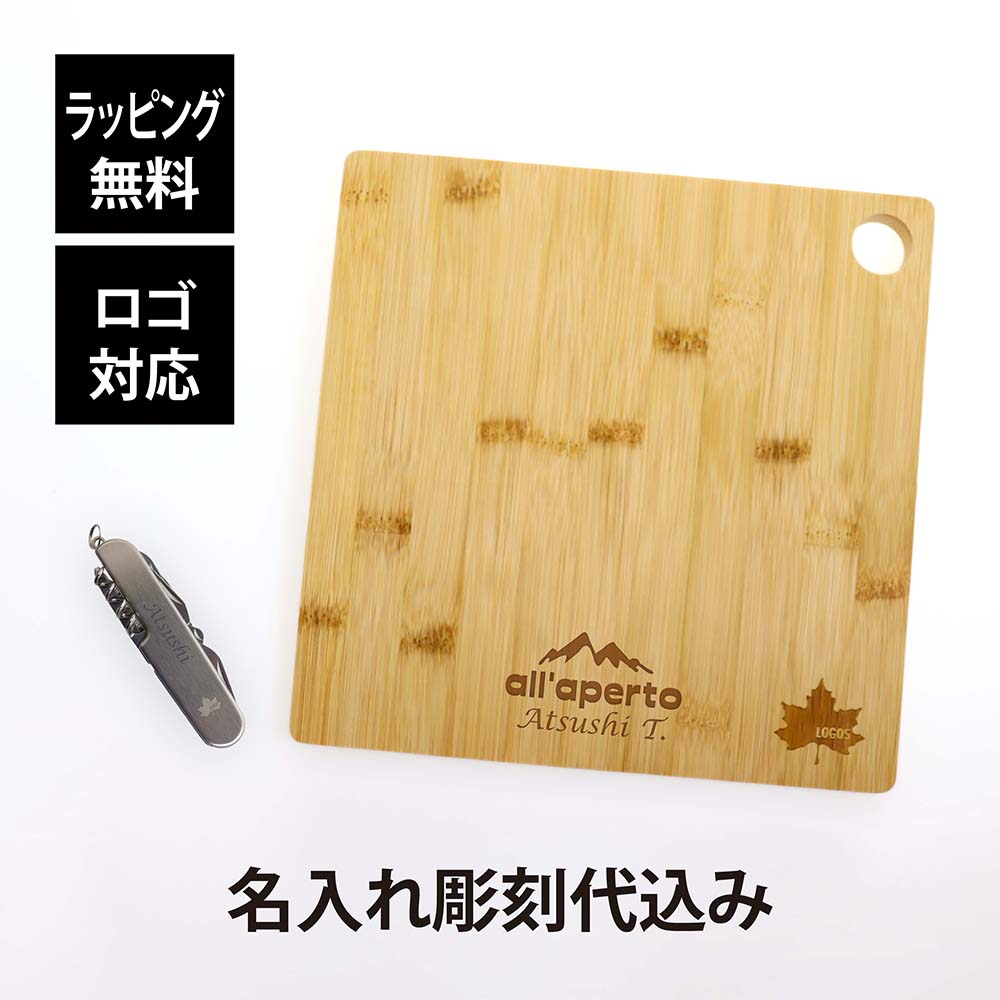 ロゴス Bamboo ちょっとまな板×マルチツール14 ソロキャンSET に名入れ彫刻してお届けします。