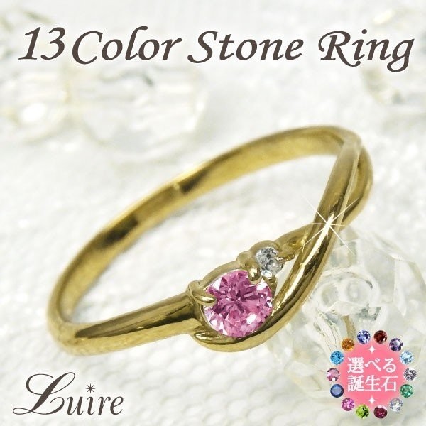 リング 指輪 10金 リボン 一粒石 カラーストーン ピンキー 誕生石 ミディ ファランジ K10 誕生日 プレゼント バレンタイン
