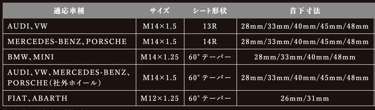・ボルトサイズ「M12×1.25」共通