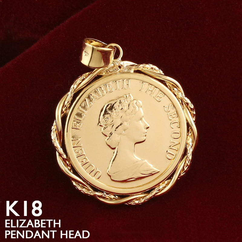 18金 ペンダントトップ K18 ネックレストップ レディース エリザベス コイン チャーム ヘッドのみ ゴールド 地金