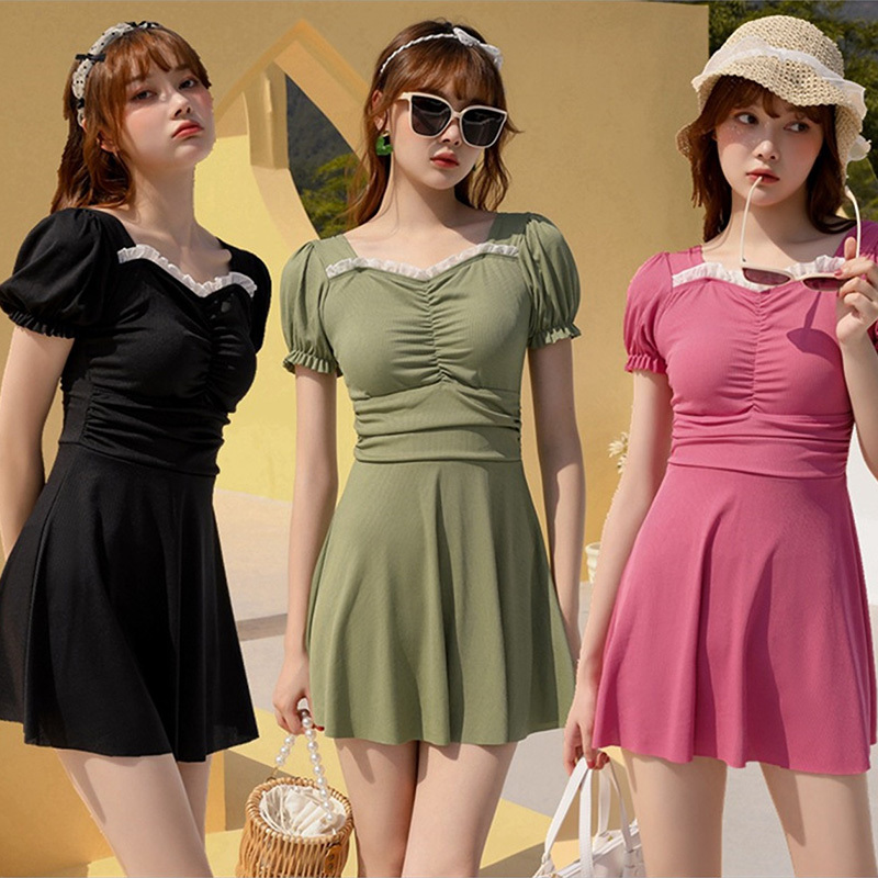 水着 レディース 体型カバー 女の子 オトナ女子 可愛い 韓国 ワンピース かわいい おしゃれ 体型カバー水着 露出控えめ ワンピース 中学生 脚 二の腕